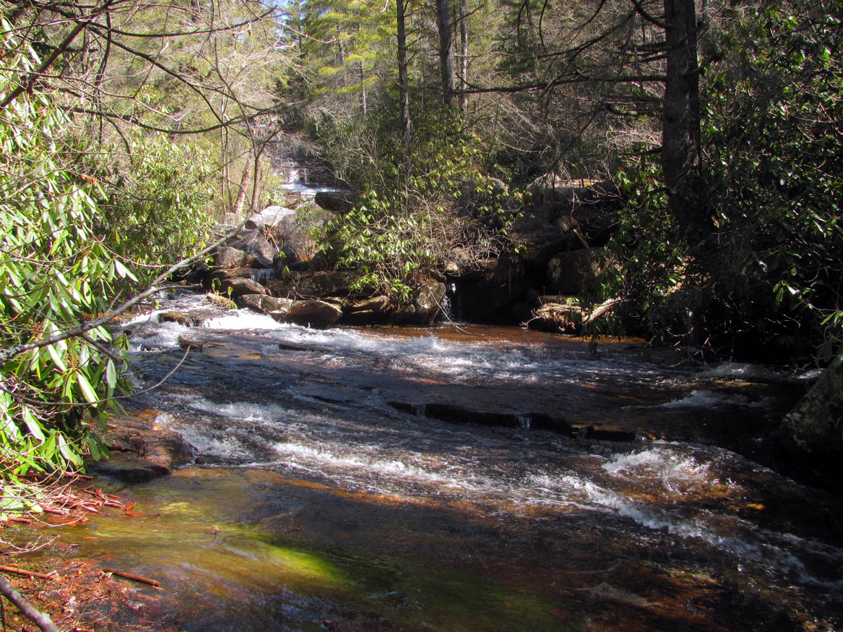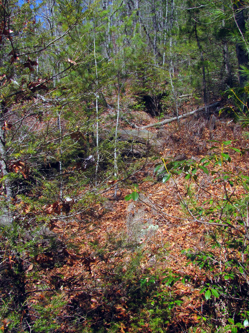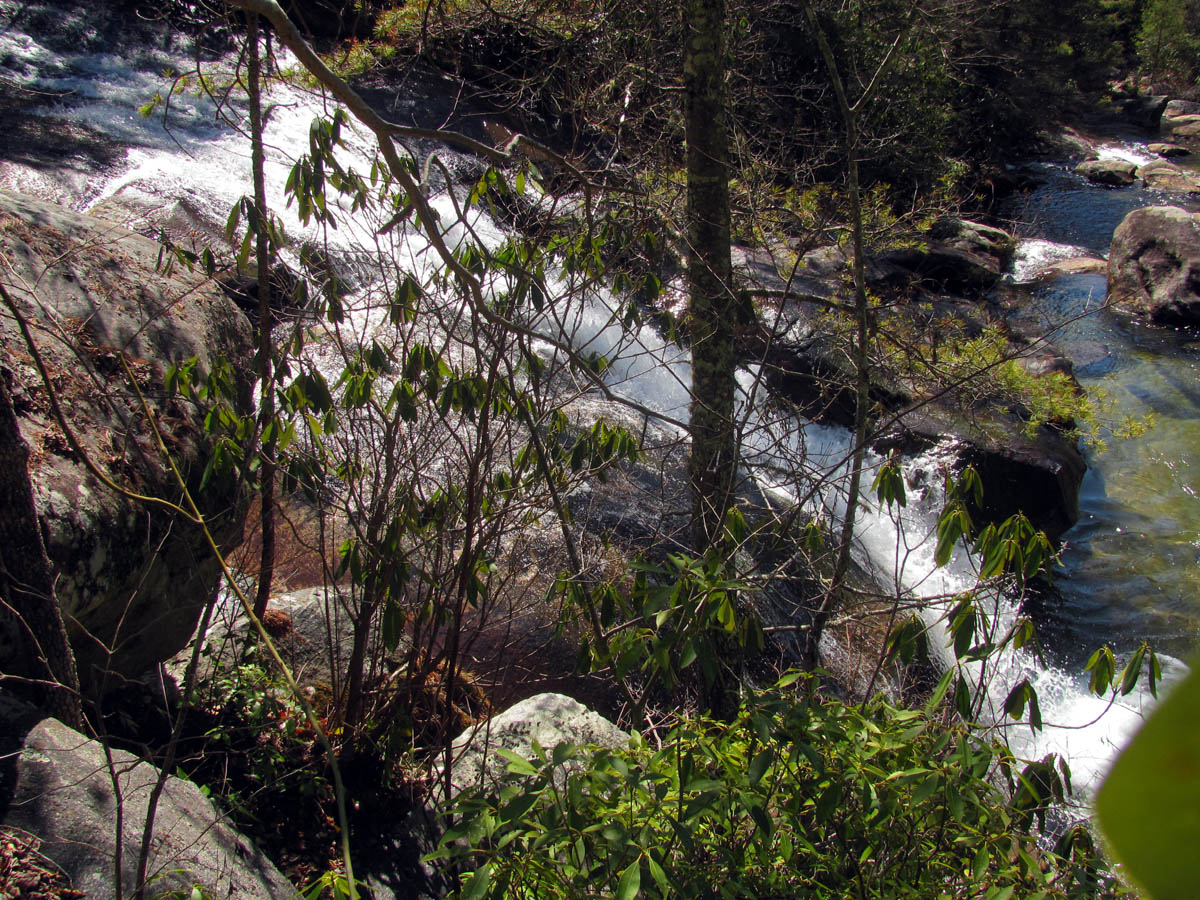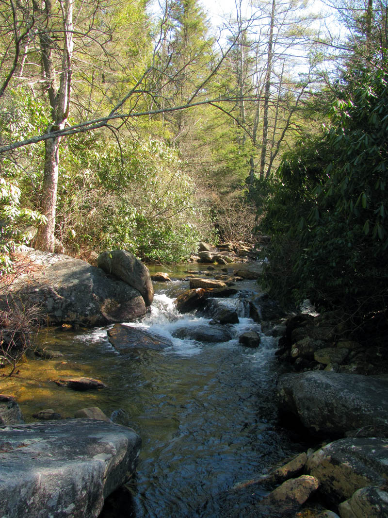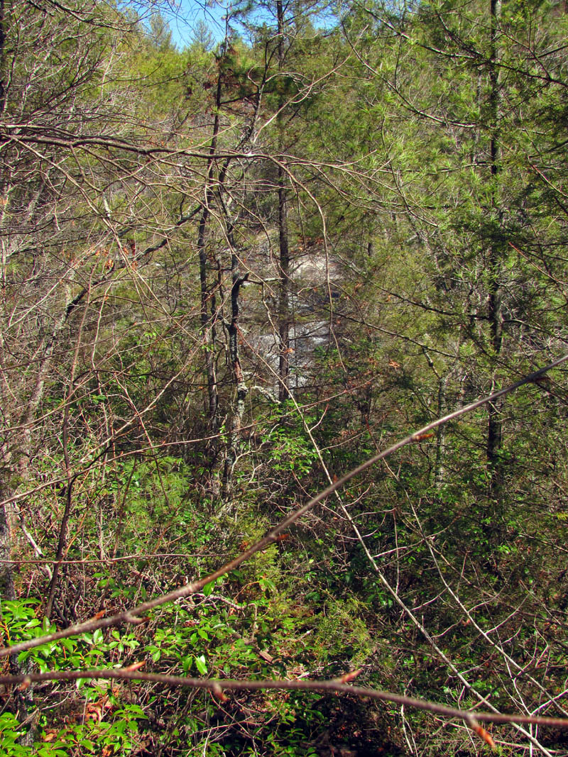Grassy Creek about .2 above Wintergreen Falls (here we had to get out of the thickets to see where we were and could finally see a glimpse of the base of the falls off in the distance)