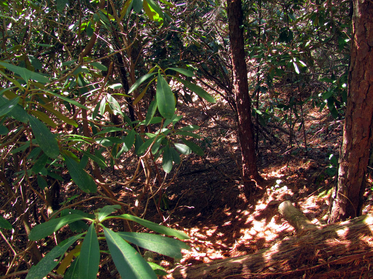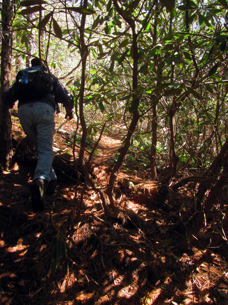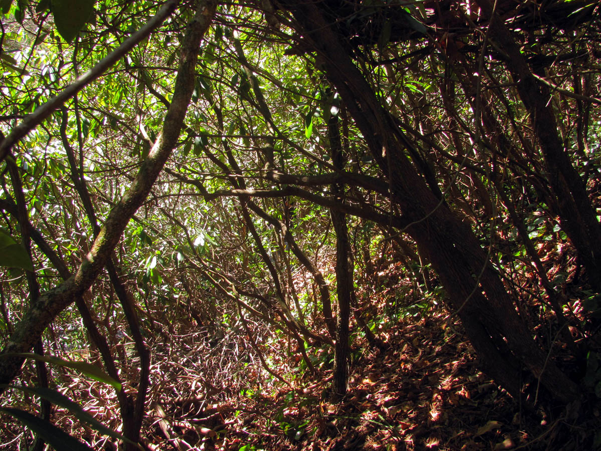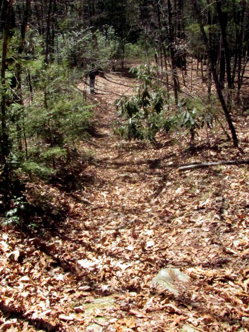 Grassy Creek about .2 above Wintergreen Falls (here we had to get out of the thickets to see where we were and could finally see a glimpse of the base of the falls off in the distance)