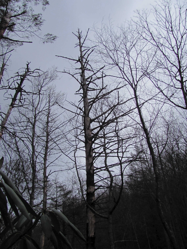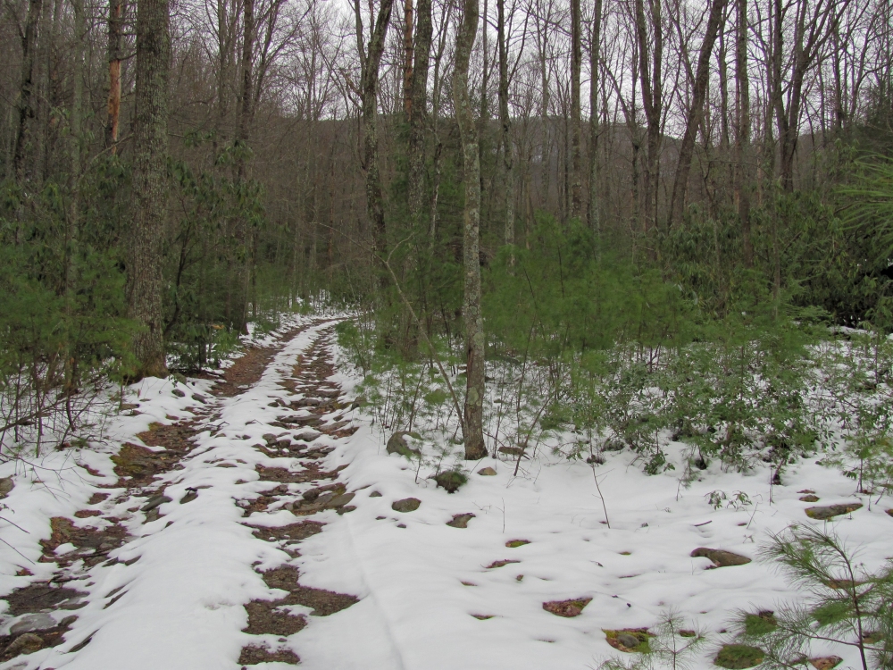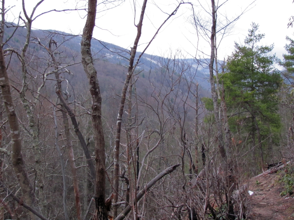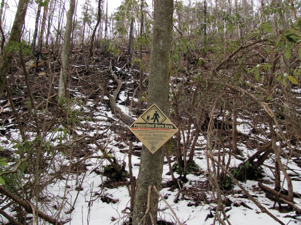 It has been more years than I can remember since I hiked this area, the last time being when Bol’Dar and myself hiked up the entire Rattlesnake Ridge trail to the top of Unaka mountain to Pleasant Garden and back. This was a similar route starting out on that same trail, passing through a ‘prescribed burn area‘ until we reached the intersection of trails and roads at Dick Creek Gap where we left the trail and went down the road towards Dick Creek. After crossing the creek we went right on the road that leads to the old camp spot we used to go to all the time which is just beyond the turnoff to the falls.