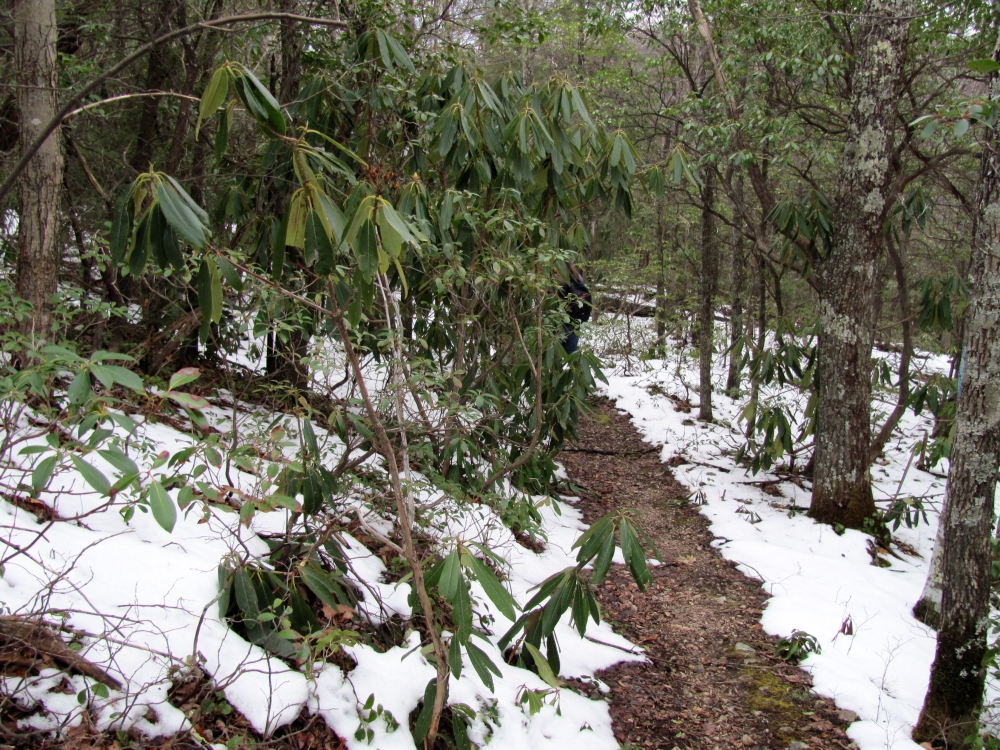 The falls are located not far off the road to the right, just before reaching the small field and camp spot but they are hidden so you will need to listen for them. Not much further beyond that is the end of the road where it runs right into Dick Creek. This is where the ‘shortcut‘ we took began on a fairly nice trail which more or less ended, then became an exhilarating short climb following some yellow plastic bags tied on limbs, where we soon came out on top of the ridge on the Rattlesnake Ridge trail where we went right, leading back down to Dick Creek Gap. There were some nice views to be seen on the way back down. By the time we got back to the car it was almost 6pm and nearly dark with approaching rain clouds looming, but we did succeed in our quest to see the falls and take some nice pics with our new digi-cams we each got for Christmas! For more pics of these falls, please visit the photo gallery.