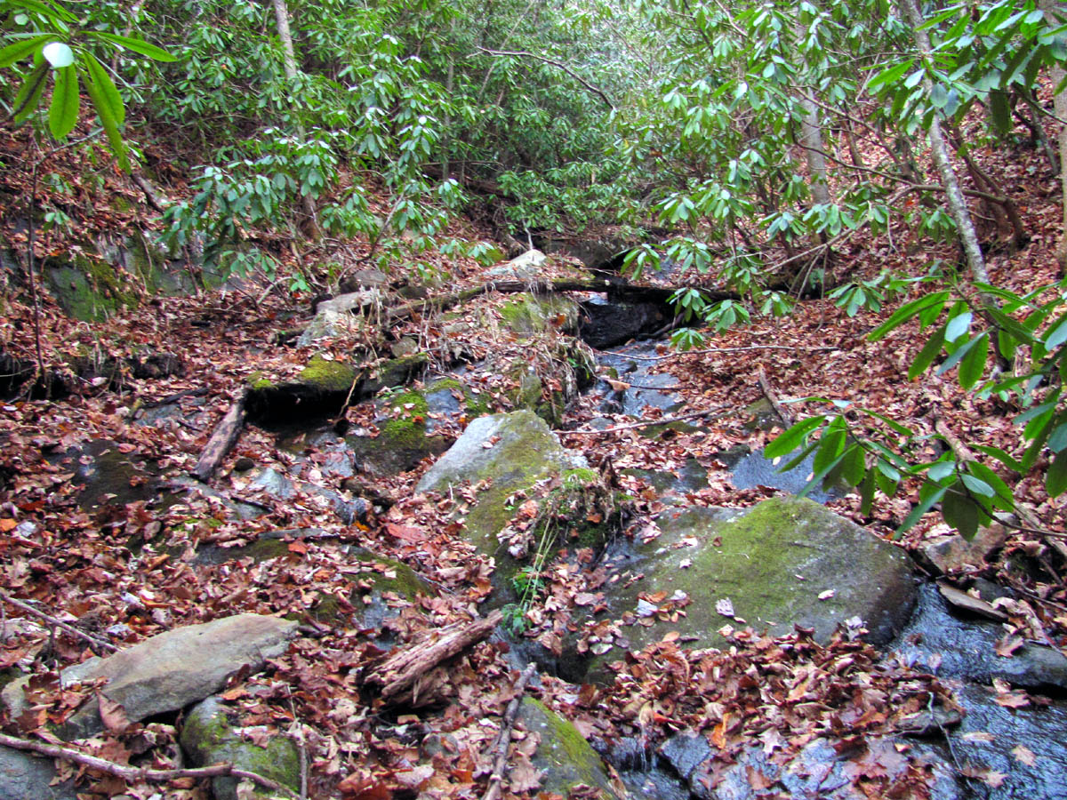 Indian Summer is still hanging in there with sunny days and warm temps, so this past Saturday found my son Tyler, my friend Bol’Dar, and myself back in the Rocky Fork area. The creek had even more water flowing than our previous trip, although it had not rained much, but our destination was located off what we call the ‘high road‘ and then to the curve in the road where the Long Branch creek and trail enters. This is a little over half a mile from the gate. There are remnants of an old log road that leads into this hollow but some parts are overgrown and rough going where other parts are passable.