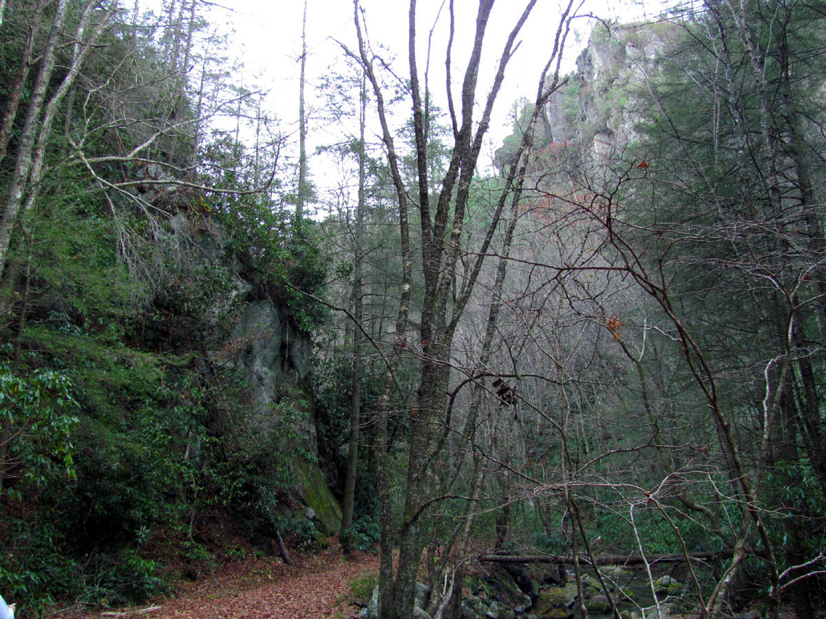 We passed at least three small waterfalls that were every bit as tall as the two lower falls that are listed on the Tennessee Landforms website for this location before we reached the first ‘split’ in the trail. Although there was not much water flowing I know these would be very nice during higher water periods.